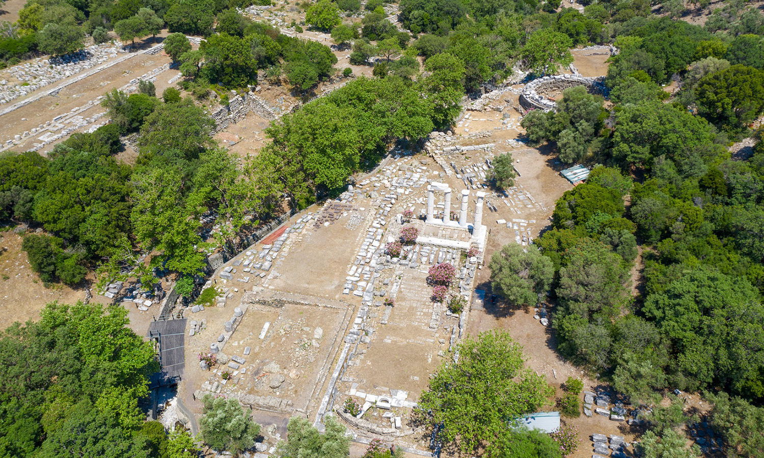 In the Thracian Sea, only the mountainous pyramid of Athos can rival the dignity of the mountain mass of Samothrace, and it is notable that they both have a similar importance in history. In antiquity, Samothrace was the island home of the Mystery Cult of the Great Gods. According to mythology, it was on Samothrace that Zeus encountered Electra, one of the seven Pleiades; from their liaison, the mythical siblings Dardanos, Iasion and Harmonia were born. Later, Cadmus, in search of his sister Europa,traveled from Phoenicia to Samothrace, where he found Harmonia, whom he abducted and later married. In historical times, Alexander the Great᾿s parents, Philip II and Olympias, methere when they were being initiated; and Perseus, Macedonia᾿s last king, sought refuge here after the battle of Pydna in 168 BC while pursued by the Romans. The content of the Mysteries᾿initiation rites was secret. Today, their power is signaled by the deployment of the innovative buildings that once framed the rites within the sacred landscape and make the Sanctuary of the Great Gods on Samothrace one of the most important expressions of Hellenistic sacred spacein the ancient Mediterranean. The identity and nature of the Samothracian Gods remain enigmatic. Ancient writers often referred to them as the Kabeiroi, but in Samothrace they were simply called the Gods or the Great Gods. An Alexandrian writer, Mnaseas, gives us their names: Axieros, Axiokersa, Axiokersos, whom he associates with the Eleusinian triad Demeter, Persephone and Hades. In addition, he names a fourth figure, Kasmilos, whom he connects with Hermes. Initiation was available throughout the sailing season (April-November).